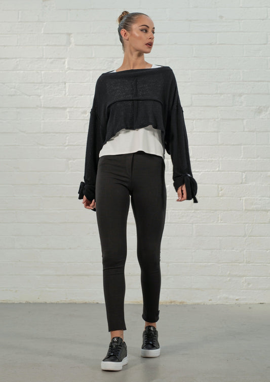 Rhea Flute Sleeve Top - Silky Black Jersey