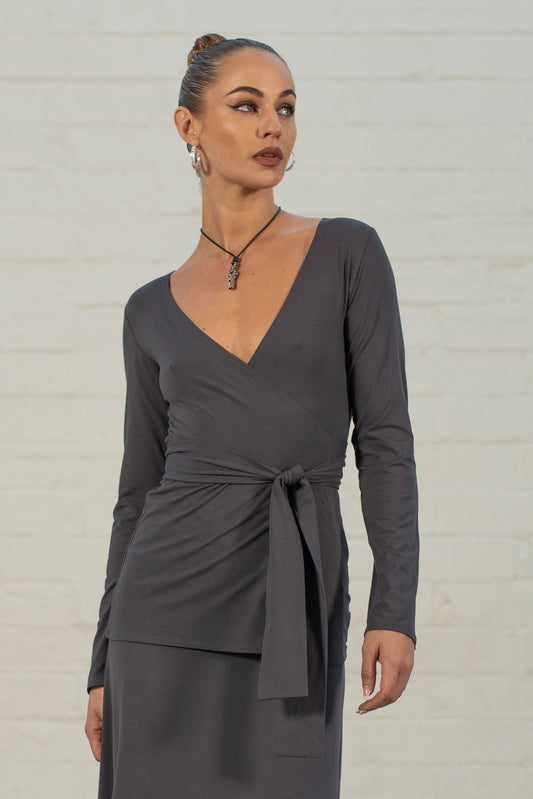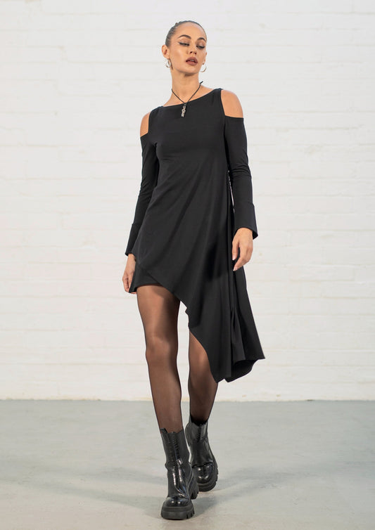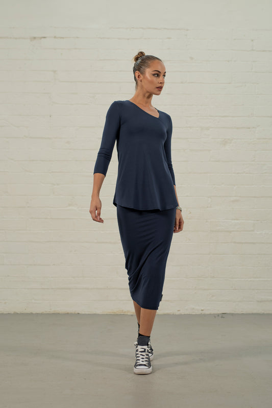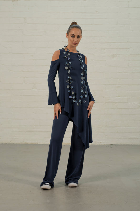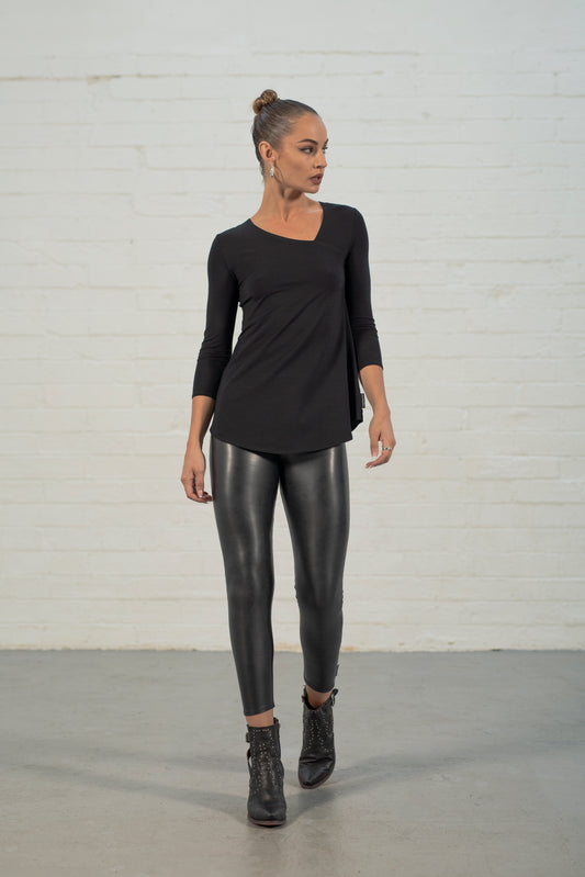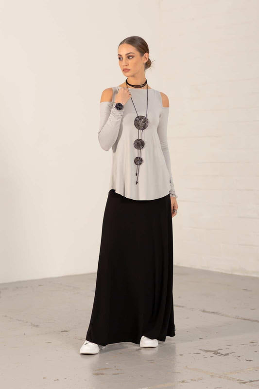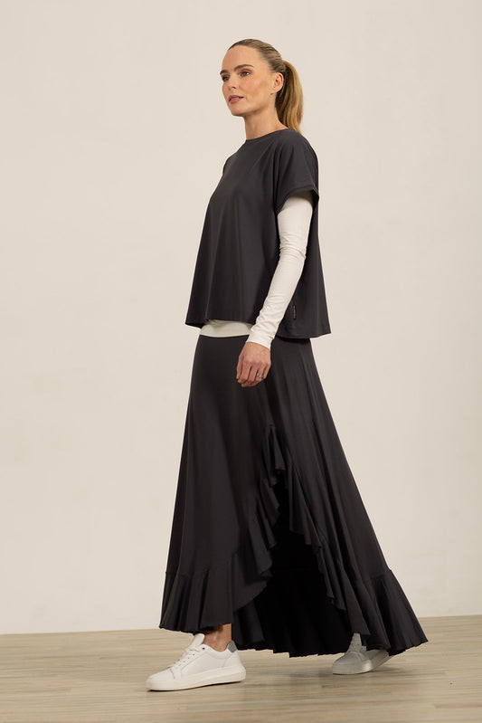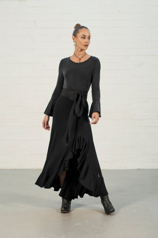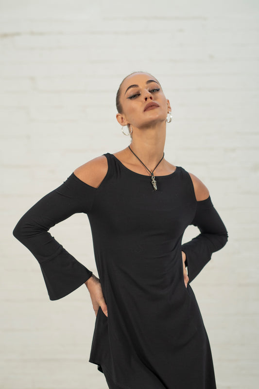 Rhea Flute Sleeve Top - Silky Black Jersey