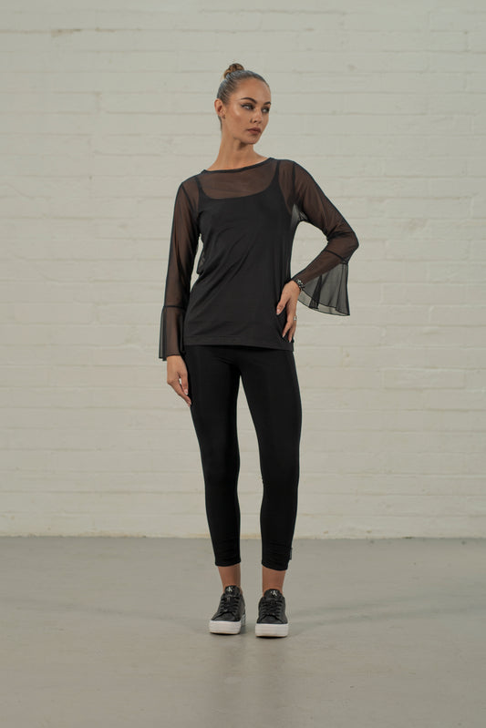 Sold outRhea Flute Sleeve Top - Black Mesh
