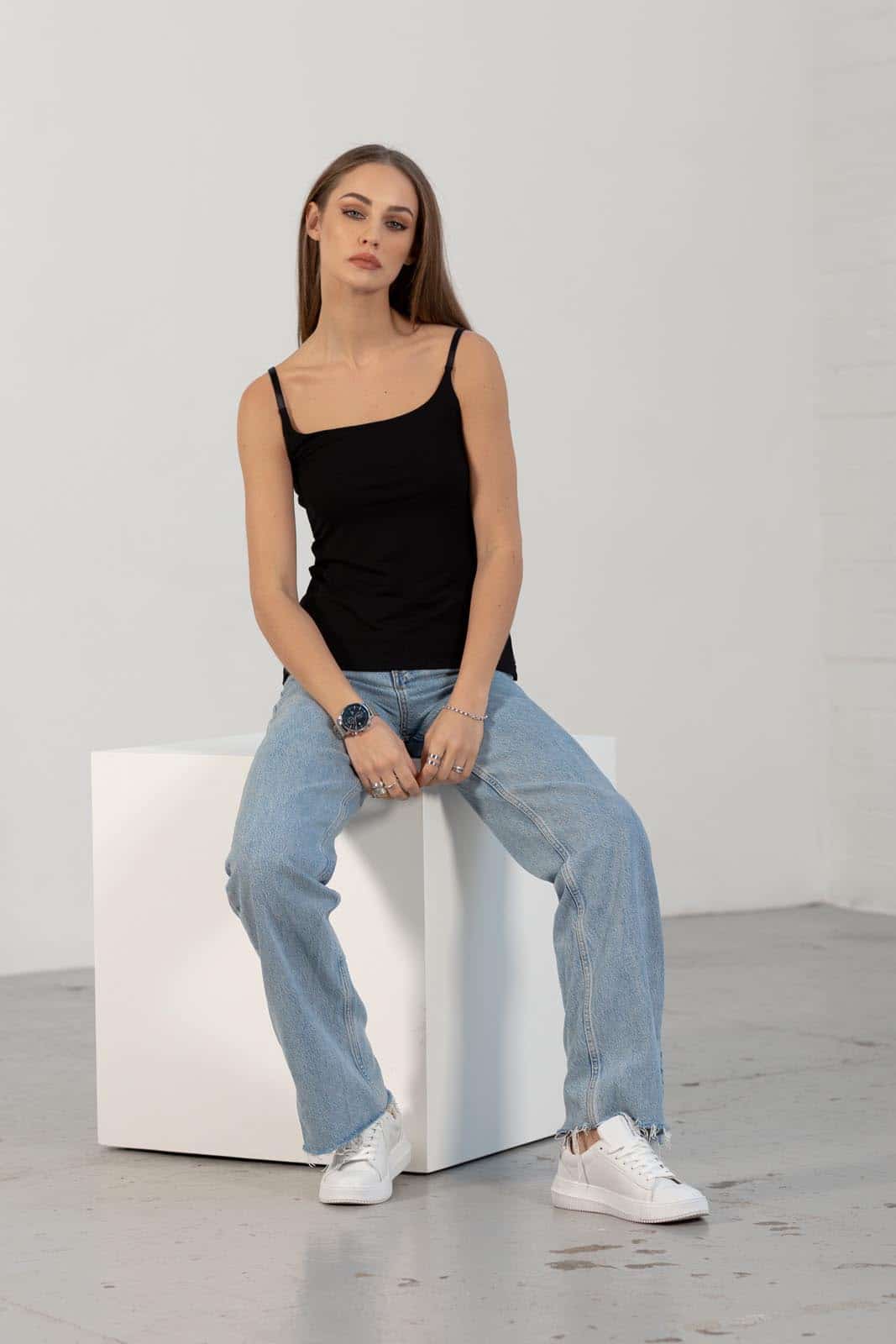 Adjustable straps allow you to tailor both the fit and the neckline height.